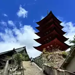 Today I took Hiroshima Electric Railway Line 2 to Hiroden Miyajimaguchi Station, then took a ferry to Miyajima (itsukushima). I happened to catch up with a local school’s school trip. The whole boat was full of middle school students. Miyajima’s most famous It’s Itsukushima Shrine and the bright red torii gate standing on the sea. Depending on the tide time, you can get close and take pictures. From time to time, there are wild Bambis on the shrine that will steal food. The main purpose of my trip is to go there Visit the Mishan Hondo. It is said that Kobo Daishi once practiced here. The distance from Momijidani Park to the main temple is 2.5 kilometers, and it takes about 50 minutes to walk. The mountain road is easy to walk and the scenery along the way is good. You can admire the Seto Inland Sea and overlook the shipbuilding of Kure City. Factory; for the downhill route, I took the Daishoin Hiking Trail, which passed by the Shiroki Waterfall and Takinomiya Shrine. There is a hall dedicated to Kobo Daishi in the Daishoin, and there are 88 shrines to visit at the Bensho Cave. It felt like walking there again Reliving the memories of this trip, I bought some もみじ steamed buns at Miyajima Yokocho on my return trip, which are considered local specialty Japanese confectionery.