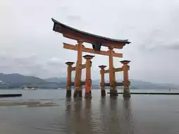 The photo shows the gate at high tide, and at low tide you can walk to the base of the torii gate. 👣⸒⸒