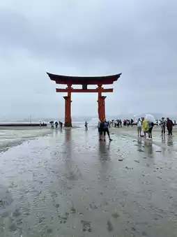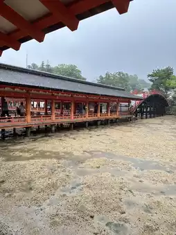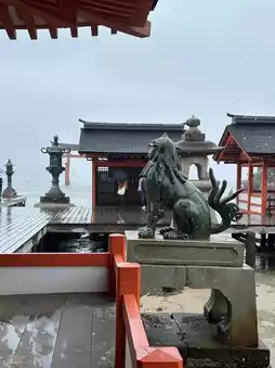The large torii gate standing in the sea is often regarded as a symbol of Itsukushima Shrine and even Japanese culture as a whole. It is spectacular whether viewed from afar or up close. The island is home to many deer that are not afraid of humans and are very approachable. During low tide, you can walk down to the tidal flats to see the torii gate, while during high tide, the torii gate is submerged in seawater. Therefore, you will find many shells attached to the pillars when viewed up close. It is recommended to check the tide schedule before visiting.
