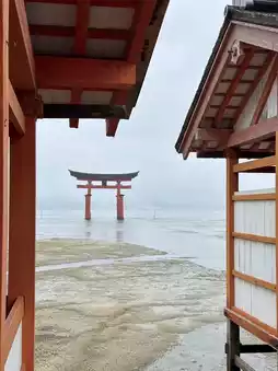 Itsukushima Shrine is located on the island of Itsukushima (formerly known as Miyajima) in Hatsukaichi City, Hiroshima Prefecture, Japan. The shrine was founded around 593 AD and has a history of about 1400 years. It mainly enshrines three goddesses (Tagorihime-no-Mikoto, Ichikishimahime-no-Mikoto, and Tagitsuhime-no-Mikoto). Built on the tidal flats of the Seto Inland Sea, the large torii gate standing in the sea in front of the shrine is considered one of the "Three Views of Japan" and is the most famous landmark on Itsukushima Island, also a World Heritage Site.