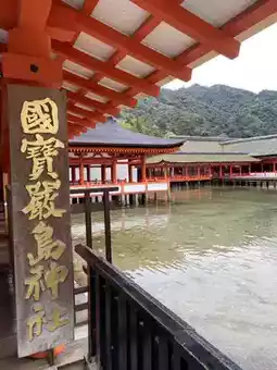 Famous for its floating appearance on the sea, you can check the tide schedule on the "Miyajima Tourism Association" website. It's recommended to stay overnight here. The shrine opens at 6:30 AM, and visiting early in the morning allows you to enjoy the serene atmosphere and capture the shrine floating on the water during high tide. At night during low tide, you can walk to the sea torii gate and take photos of the illuminated gate, which is stunning. It's also suggested to skip the hotel breakfast, have a light meal, visit the shrine, and then head to Momijidani Park to take the cable car to Shishiiwa Station. From there, a 30-minute hike will take you to the summit of Mount Misen, where you can enjoy breathtaking views of the Seto Inland Sea.