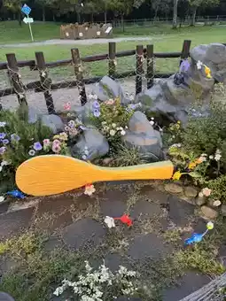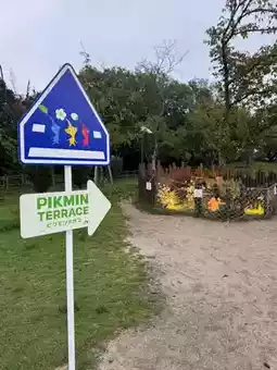 Pikmin were displayed inside several fenced areas in the large plaza.