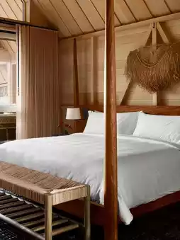 Spanning 81 acres, the property is surrounded by lush tropical vegetation and azure seas, boasting stunning geological landscapes. Its 150 guestrooms, including 31 suites, are spread across crescent-shaped villages on the east, south, and north sides, offering secluded spaces in refined beach bungalows.