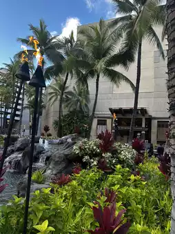 The palm trees dotted around the beach and the relaxed atmosphere added to the exotic feel, and the sight of people enjoying the surf was also impressive.🌺