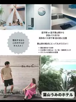 You won't want to miss it 🤝😹In the picture, + cafe (around ¥1000 per person) + dinner (budget around ¥3000 per person) + souvenirs (around ¥2000) for less than ¥10,000! I'll also introduce the ❮ Hayama model plan ❯ that I actually went around ✍️There's also information on recommended cafes, restaurants and photogenic shooting spots ▶︎▶︎▶︎Please check it out! Swipe ▶︎▶︎▶︎ 📷✨Recommended hotels for accommodation are also listed, so why not take a quick weekend trip to Hayama? 🥰Of course, you can also enjoy it on a day trip🫶🏻✨Schedule12:00 | First, fill your stomach in front of the station🍴Use the [meal ticket] on your ticket13:30 | Cruise at Hayama Marina⛴Use the [reward ticket] on your ticket15:00 | Take a break at a cafe (budget around ¥1000)15:40 | Walk to Morito Beach16:30 | Take a photo at Manase (bus) bus stop📷It's a famous photogenic spotˎˊ˗18:00 | Dinner🍽(budget around ¥3000)On the way home🚃Or, if you're staying overnight...! ▶︎We recommend Hayama Umino Hotel ✨🏨↓Details of each store and spot can be found at the bottom✍️✨↓-----------------------------📍 Hayama Marina🏷️50-2 Horiuchi, Hayama-machi, Miura-gun, Kanagawa Prefecture🕐9:00-17:00 (Saturdays and Sundays 8:00-17:00)🗓️Closed on Tuesdays▶︎There's a popular pudding shop called Marlowes🍮✨ We also recommend taking a walk along the sea💡-----------------------------📍 Morito Beach / Morito Daimyojin Shrine🏷️Horiuchi, Hayama-machi, Miura-gun, Kanagawa Prefecture▶︎Many beach huts appear during the swimming season🌴 There are also lively performances, so it gets really lively! My favorite beach hut is "oasis"✨ Go and check it out! 🍺-----------------------------📍 ☕️ beforesunset🏷️900 Horiuchi, Hayama-machi, Miura-gun, Kanagawa Prefecture🕐7:30-16:00💰Coffee from ¥250/Scones from ¥200/Cakes from ¥600 ▶︎The lemon pie is delicious🍋😋The morning set is also great value for money and they serve alcohol, so it's perfect for a break☕️🍺The closing time is early, so be careful⚠️-----------------------------📍 Manase Bus Stop / Manase Beach / Manase Fishing Port🏷️1068-2 Horiuchi, Hayama-machi, Miura-gun, Kanagawa Prefecture ▶︎A photogenic bus stop that's a hot topic on social media! It's been featured in many commercials, dramas, and anime💡When you get off the bus stop, you'll find Manase Beach! If you walk a little further, you'll find a fishing port, which is super emotional... 🐟-----------------------------📍🍕 CANA🏷️1003 Horiuchi, Hayama-machi, Miura-gun, Kanagawa Prefecture🕐11:30-14:30/17:00-22:00💰Beer from ¥480 Wine from ¥600 Pizza from ¥1,400 Lunch times vary depending on the day of the week ▶︎A very popular restaurant that requires reservations! The pizza is so delicious... 🍕🩷 The homemade gelato is also the best 😋 You can also get pizza to go, so don't give up even if it's full 🫡✨-----------------------------📍 Hayama Umino Hotel🏷️251-1 Horiuchi, Hayama-machi, Miura-gun, Kanagawa Prefecture💰From ¥8,300 per person ▶︎If you're staying here, this is definitely the place to go! The hot spring on the top floor overlooks the ocean of Hayama 🌊 The cafe is cute and so comfortable 🩷 There are many rooms, from dormitories to twin rooms, so choose one that suits your budget 🏨✨-----------------------------Hayama is of course recommended during the beach season, but personally I recommend the off-season when there are fewer people 🤫✨ The cafes are not crowded and you can take your time to look at the ocean 🌴☺️ Why not take a relaxing trip to the ocean by train and bus? ✨