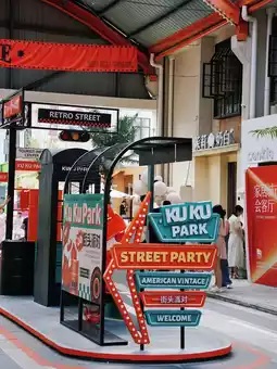 ⛩️The orange-colored district, no matter how you take photos, you can capture the atmosphere. On the main streets of the New Grain Depot, you can see various photo spots composed of bus stations and the like. Whether it's slogans or shops, the candy-colored palette brings the summer atmosphere to the fullest.