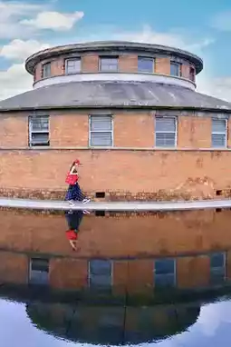 P6: Hechai 1972 circular fortress, red brick old building with a beautiful reflection