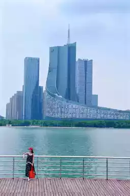 P9: Swan Lake Viewing Platform, the Tianshu Building with the sparkling lake is very healing