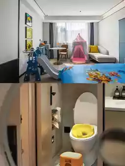 There is a distinctive large yellow ball at the hotel entrance, which is a unique feature of the hotel. You can find Easter eggs in the room and exchange them for small gifts at the front desk.