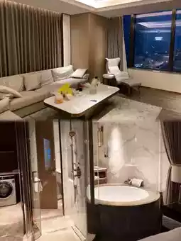 4. The bathtub is very comfortable. I'm 165 cm tall, and it felt very large and spacious. They provide disposable bathtub bags and bath salts. The shower is very delicate, and the water temperature in the bathtub area is high enough.