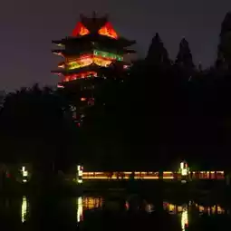 When the sun goes down, Lord Bao Park (包公园) transforms into one of Hefei’s most peaceful night escapes. Soft lantern lights glow along the pathways, pavilions reflect perfectly on the still lake, and the whole park feels like a scene from an ancient ink painting.