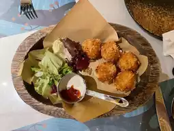 Food: We ordered Ham and cheese balls, a caesar salad, a pizza, burgers, mushroom soups, salmon, desert and eggs Benedict. Everything was delicious!