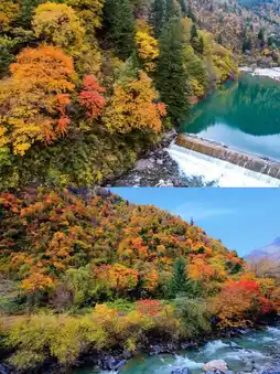 In addition to the beautiful red leaf colorful forest 🌲, there are also ancient Tibetan villages, towering snow-capped mountains, and tranquil Yamai Lake.