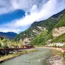 Today, we traveled to Siguniangshan Town, a small town surrounded by beautiful mountains. 🌿🏔️ The weather is super nice, perfect for walking and breathing fresh air.