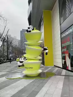 ✈️ As soon as we got off the plane, we went straight into the city! On the first night, we went for a walk at Taikoo Li. This is the hippest shopping area in Chengdu. There are many cafes, restaurants, and brand-name shops. We walked around the IFS Building with a big panda on the building. It's a must-take photo spot! 📸