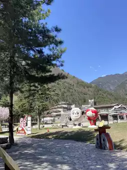 The cable car here is impressively long and high, offering breathtaking views along the way. You’ll see rows of snow-capped peaks and green pine forests interspersed with white snow, creating a spectacular scene. Once at the top, you’ll be greeted with a 360-degree panoramic view, making you feel like you’re on the roof of the world.