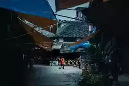 Stepping out of the temple, an ancient banyan tree comes into view. This tree, known as the 'Mother Banyan,' is covered with red silk and full of ritual significance. It is said to be a divine tree transformed from a dragon's claw, blessing the town with peace and prosperity.🌳