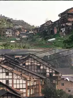 The town follows the natural contours of the mountains, embraced by peaks and waters. Its distinctive features include wooden through-type frames, hanging mountain-style roofs, small grey tiles, and cobblestone streets. Along the riverside, you'll find traditional stilt houses and corridor buildings. While some of the town's original "three palaces and eight temples" still stand today, most are not open to the public and remain in a state of abandonment, adding to the town's rustic and mysterious atmosphere.