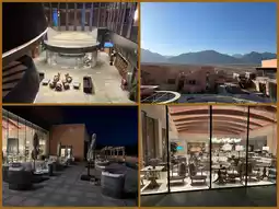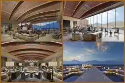 The best view of the hotel is in the main building's lobby bar, with direct views of the Helan Mountain landscape, which is very impactful. This is also the best angle to view the Sleeping Buddha of Helan Mountain, with seats and sunken card seats specially set up on the terrace.