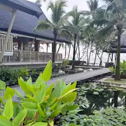 The hotel's overall architecture is a low-rise building complex with red exterior walls, using colors close to the earth, making it very photogenic.