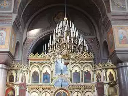 - Exterior: Red brick with 13 golden onion-shaped domes (symbolizing Jesus and the 12 Apostles)