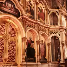 You’ll notice the iconostasis — an ornate wall of icons separating the altar — and hear the faint echoes of choral hymns that fill the vast dome. It’s both spiritual and artistic, a window into the city’s deep Eastern Christian heritage.