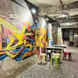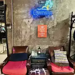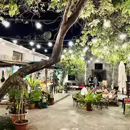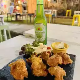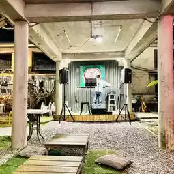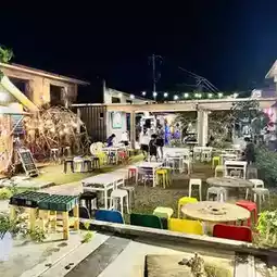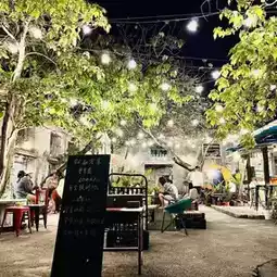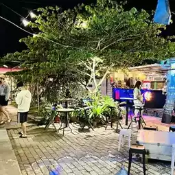 Food and restaurant - selling noodles, fried chicken, cocktails, you can sit anywhere after buying, and there is live singing every night from 8 to 10 pm!