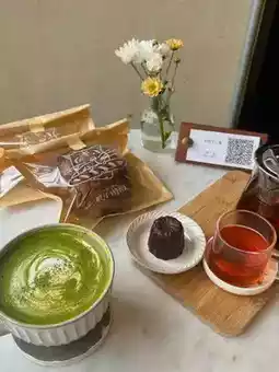 There are delicious bread and desserts. Old house with warm and green decorations is very nice.