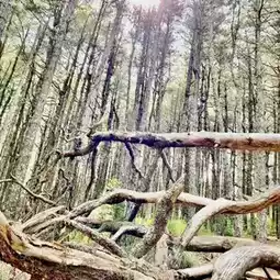 The return journey passes through Songfeng Ridge and exits at Shengguang Trailhead, where a shuttle truck takes hikers back to their accommodations. Walking on the wide pine needle carpet with beautiful forest scenery, hikers can enjoy breathtaking views of Taiwan's Hundred Peaks on clear days, making up for the regret of not being able to climb them. Along the way, unknown wild mushrooms and small flowers add charm to the journey. The Pingdu Traverse, with its mountain views and serene atmosphere, is truly a soul-cleansing adventure.