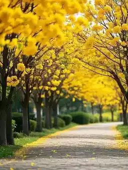 The yellow trumpet trees bloom from late February to early April, with trees covered in brilliant golden flowers during peak season. It's recommended to follow local WeChat official accounts or ask friendly villagers about real-time blooming conditions to capture the most beautiful flower scenes.