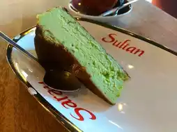 This baked cheesecake is made with crushed pistachios. It's incredibly smooth and fragrant. The highlight is the warm chocolate sauce, made with premium chocolate, just like the Belgian establishment. It's sweet, rich, and full of chocolate aroma. Absolutely delicious!