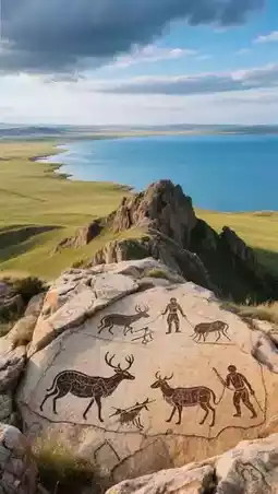 Only the whispers of wind, lake water, birds, and millennia-old rock paintings.