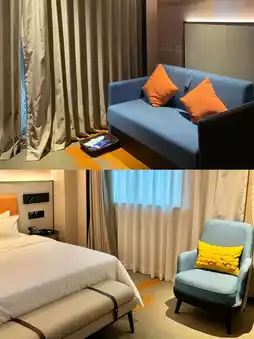 The hotel's facilities are comprehensive. The 24-hour gym includes cardio and strength training areas, as well as a yoga room, all equipped with top global fitness brands, allowing you to work out anytime. The self-service laundry room is free to use, with washing, drying, and ironing equipment available, plus regular disinfection for added peace of mind. The business office area, American-style HUB bar, and multifunctional meeting rooms ensure all your needs are met, whether for business or leisure.