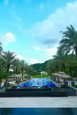🔹Dinosaur Island Water Park, featuring a waterfall surfing pool, water slides, coconut grove fountains, etc. The water is very shallow, perfect for young children.