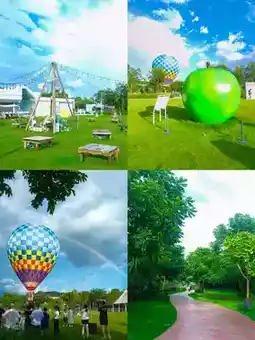 Sitting on the lawn watching the sunset, the Green Apple art installation looks beautiful under the sunset glow, and taking photos with the hot air balloon makes for amazing shots, every snap looks like a masterpiece.