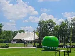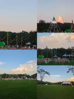 ✅️ Large lawn, perfect for photos on sunny days, really beautiful, marked by 🍏. At night there’s a bonfire party and fireworks 🎆 creating a great atmosphere