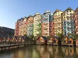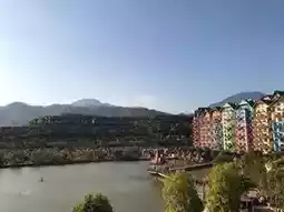 In addition to several open-air hot springs, the hotel has a row of villas 🏡, built like a European town, each villa is painted with different 🎨 colors, so the whole finish it is full of color, and facing a very large lake 🌊, we are also attracted by this view and Book!