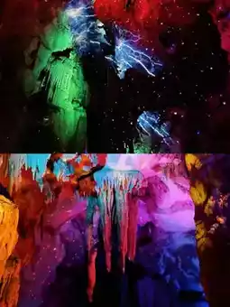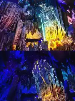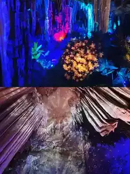 1⃣️ Cave landscape: The cave is rich in natural landscapes such as stalactites, stalagmites, stone pillars, etc., which are like a dream under the light.