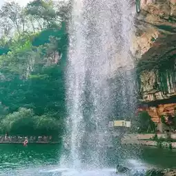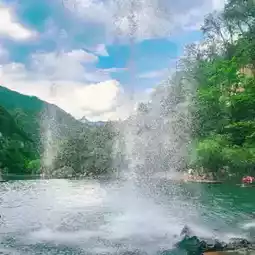 The mist of Xiangu Waterfall hits you like a natural air conditioner. A 30-meter silver dragon dives from the dark green cliff, smashes into the green lake, and explodes thousands of broken jades. The sun penetrates the water pipe and builds a rainbow bridge - Xiangu gives you a refreshing coolness in the wildest posture.