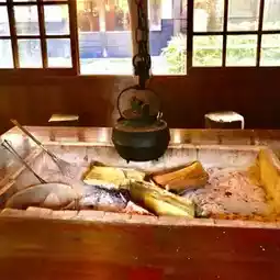 Yumoto Choza is located in Fukuji Onsen, an area dotted with various hot spring resorts, further inland in Hida Takayama. Housed in a charming old-fashioned building, you can experience a nostalgic, traditional Japanese atmosphere. The hot springs themselves are magnificent, but the various ambiances, including the hearth and furniture, create a very comfortable atmosphere.