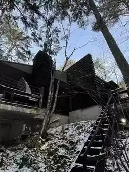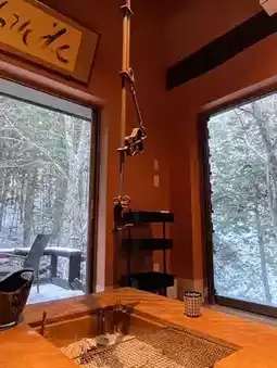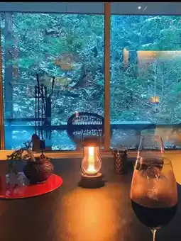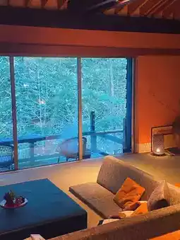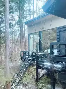 This is an inn where you can enjoy the illuminated trees outside, the sounds of the stream, and nature while warming yourself up by the fireplace with a glass of wine or coffee. It looks like you can enjoy playing in the river in the summer, so it's one of the inns I'd like to go to again.