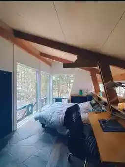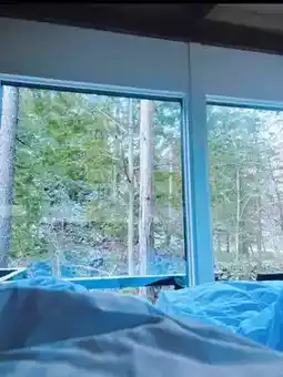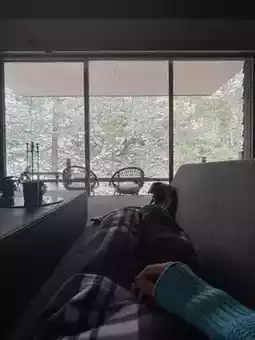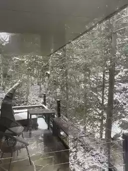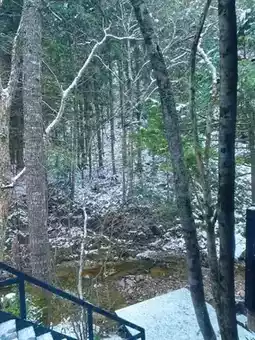 There was a little bit of snow. It's a wonderful location deep in the mountains surrounded by trees and a stream flowing all around!