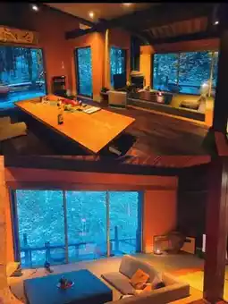 From the Japanese-style living room with a fireplace, you can enjoy the large windows and the green scenery. There are four terraces with different concepts, such as the babbling terrace and the star-gazing terrace 🍁🌿