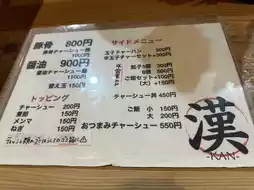 Tonkotsu ramen is 800 yen, soy sauce ramen is 900 yen, extra noodles are 150 yen, and egg fried rice is 500 yen. You can choose between 3 or 6 gyoza. There are also many set menus that combine ramen.