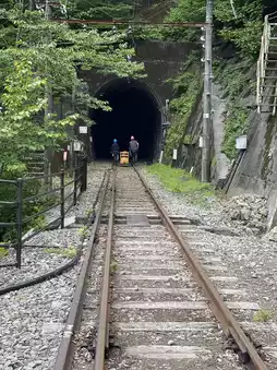 Using part of the track that was replaced due to the construction of the Yamba Dam, a bicycle-type trolley (Azuma Gorge Rail Bike) Agattan)