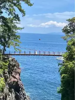🚗 11:00 We arrived at Izu Jogasaki Coast. The sea view here is simply breathtaking! The Kadowaki Suspension Bridge spans the blue sea, as if you have walked into a fairy tale world. We spent about 60 minutes here, taking photos, and enjoying the sea breeze, and our mood was instantly healed~
