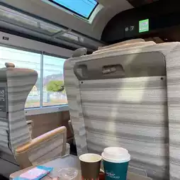 This all-green car sightseeing train will enhance your trip from the Tokyo metropolitan area to Izu.
