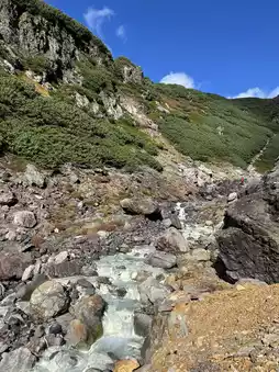 From Asahikawa Airport, you can take a bus to Asahikawa Station (around 1,000 yen), then board the 'Ideyu-go' bus (1,800 yen one way) and get off at the final stop. The ropeway to Sugatami Station costs 3,500 yen for a round trip during the season. While there is an option to hike up the trail instead of taking the ropeway, it is not recommended due to the possibility of encountering brown bears. I tried hiking once, but after noticing traces and the smell of animals, I got too scared and opted for the ropeway the second time. 💦