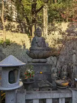 #大圆寺 located in Meguro, Tokyo, is one of the original Yamate Seven Lucky Gods. Daikokuten is a historic temple that has been loved by people since the Edo period. The temple grounds are dotted with eye-catching buildings and stone Buddhas, such as the stone statues of the Five Hundred Arhats and the Koshin Pagoda. The Daienji Stone Buddha Group is particularly spectacular.