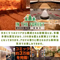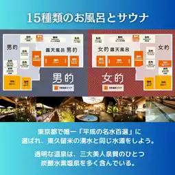 Natural hot spring water is pumped up, and there are so many great things such as 15 types of baths, rock baths, reading, massages, a food court, and a shuttle bus! Let's go♪